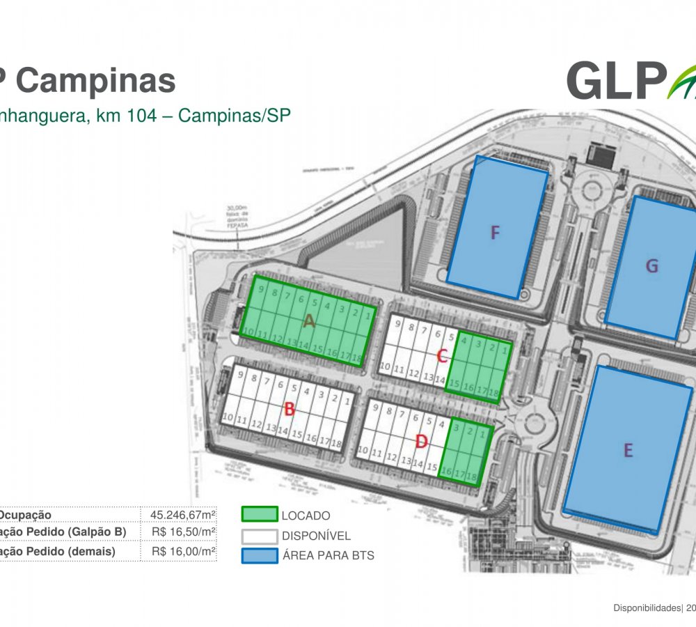 Excelente Galpão, divididos em módulos, com ótima localização, possui docas pé direito de 12 metros. Valor R$ 16,00, o metro quadrado, Detalhe estuda proposta.