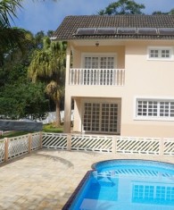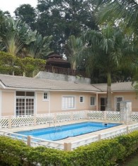 Lindo Sobrado em condomínio fechado de alto padrão, possui 2 dormitórios mais 3 suítes sendo 2 com closet e 1 master com sacada, sala 3 ambientes com roll de entrada e lavabo, cozinha, área de serviço, 4 wc sendo 2 internos e 2 externos, espaço gourmet com churrasqueira e wc, escritório com wc, dispensa, salão de festa e de jogos com wc, piscina com cascata, enorme jardim e garagem para até 6 autos sendo 2 cobertos, casa de caseiro com 2 dormitórios, sala cozinha e wc, agua, luz, garagem e entrada independente.
