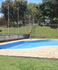 Linda chácara, excelente localização, possui 3 dormitórios, sendo 1 suíte, sala 2 ambientes, banheiro social, cozinha, área de serviço, espaço gourmet com churrasqueira, dispensa, piscina com cascata e banheiro de apoio, campo de futebol, água de poço semi artesiano, e garagem para 4 autos com portão automático. Detalhe casa avarandada e no alto que oferece uma linda vista panorâmica. Estuda proposta e parcela.